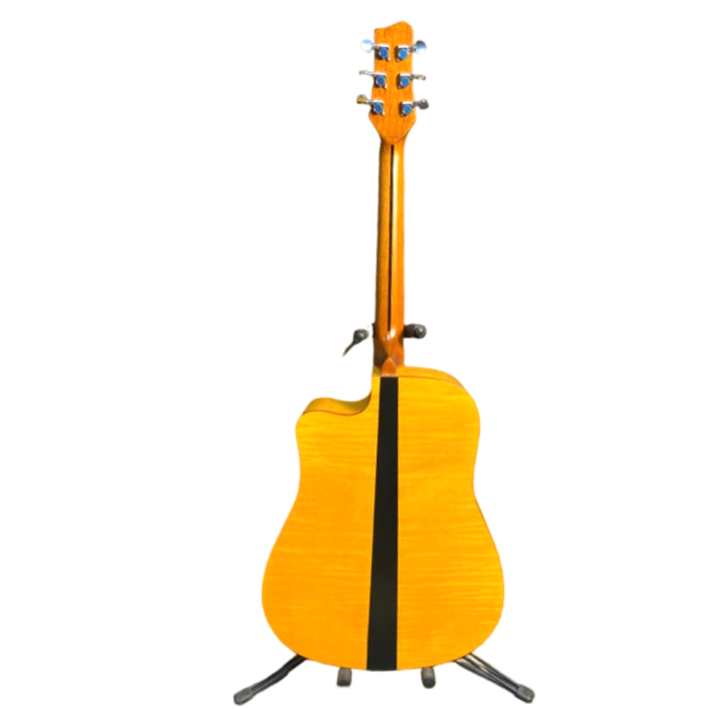 طراحی بدنه این گیتارها معمولاً بر اساس فرمهای استاندارد مانند Dreadnought یا Folk انجام میشود که تعادل مناسبی بین حجم صدا و راحتی نوازندگی ایجاد میکند. نتیجه این طراحی، صدایی پر، گرم و کنترلشده است که برای تمرین، آموزش و اجرای ساده کاملاً ایدهآل محسوب میشود.